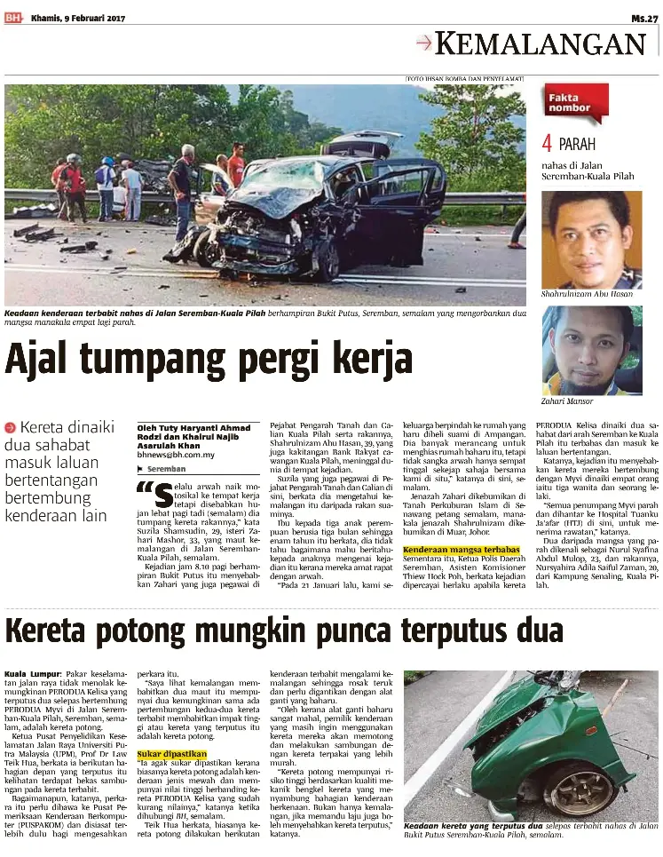 Surat Khabar Tentang Kemalangan Jalan Raya Letter 7saudara Com